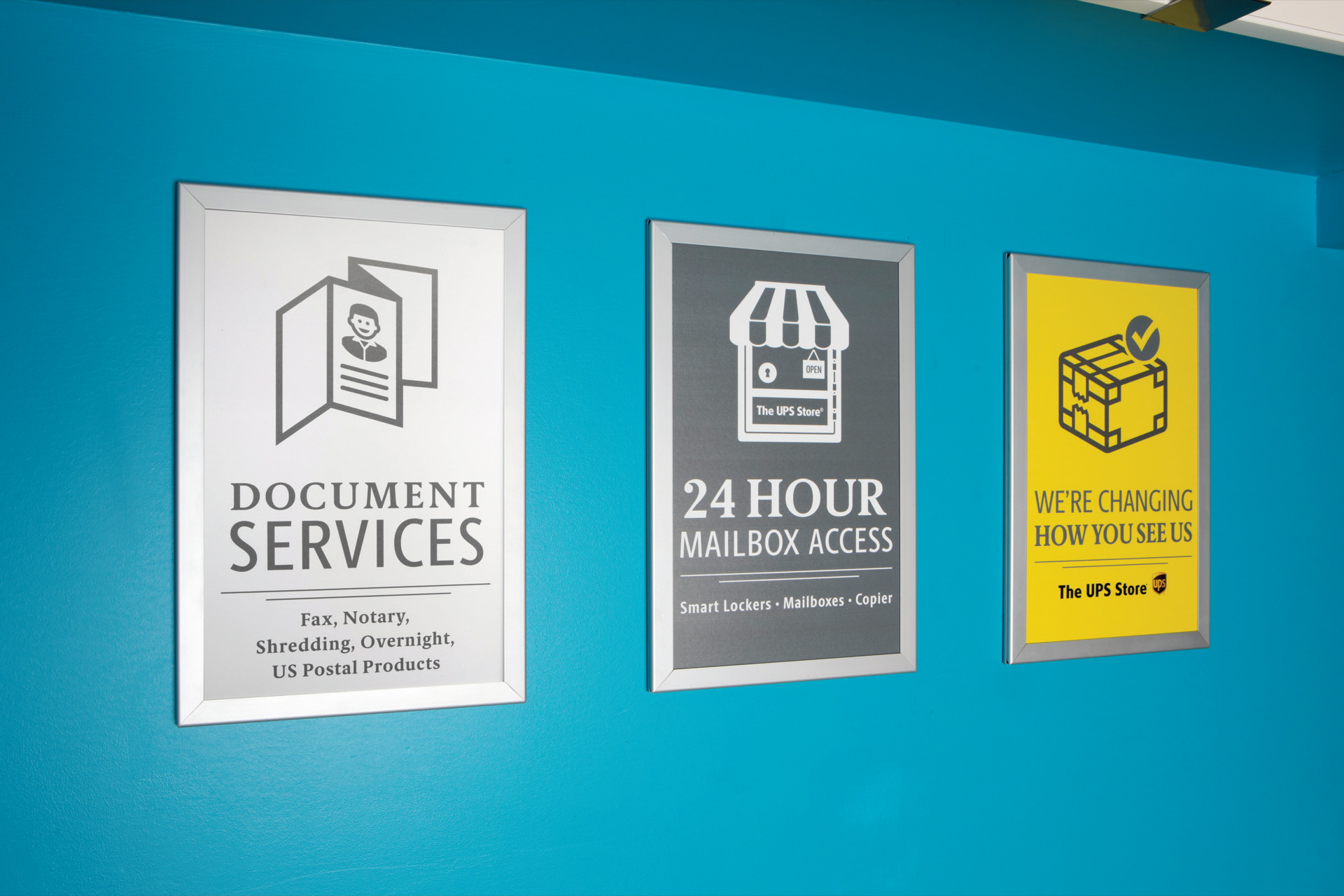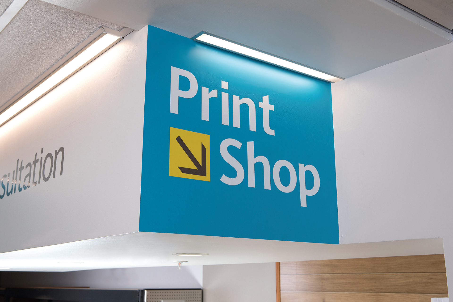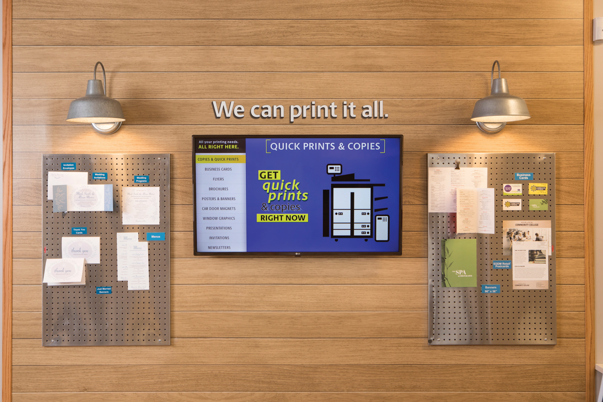 Using existing branding, we sourced the best of their color palette and used it across the space to highlight the three zones for customers (Print, Retail, Shipping).