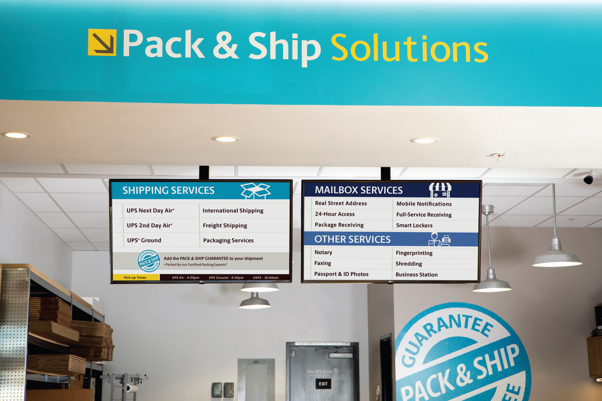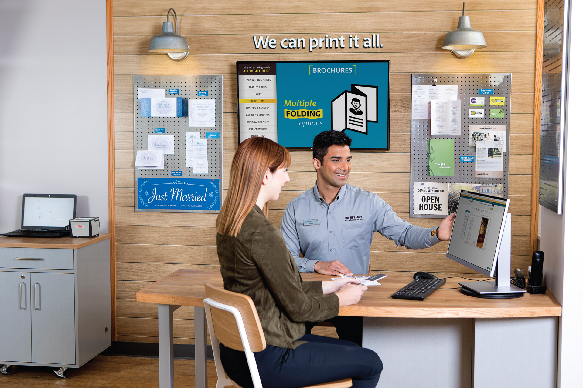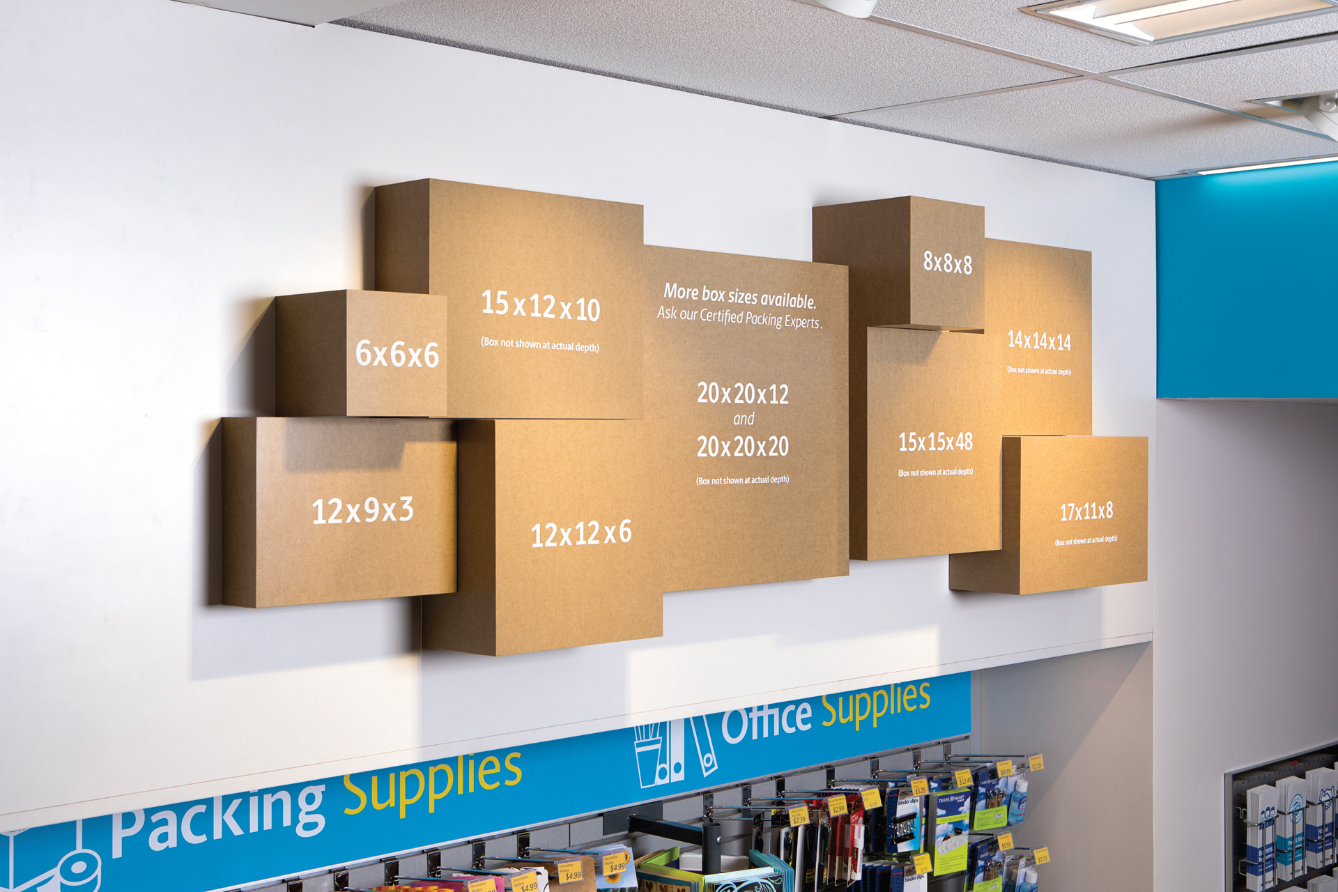 Using existing branding, we sourced the best of their color palette and used it across the space to highlight the three zones for customers (Print, Retail, Shipping).