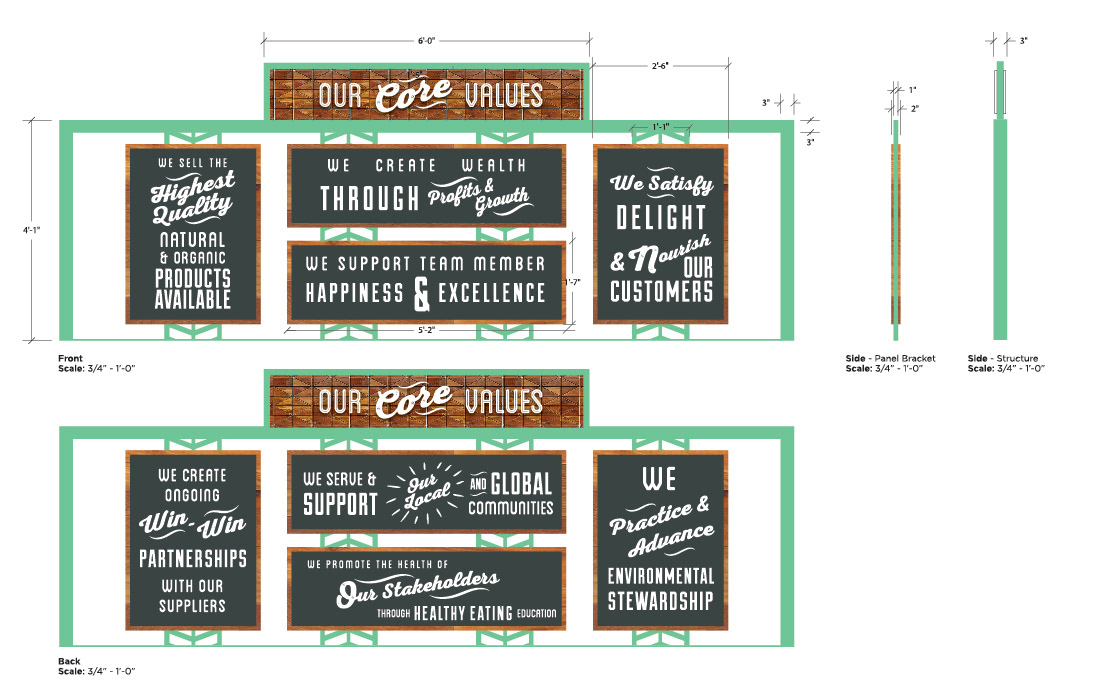 From there, each graphic element was intentionally detailed to scale. Materials and